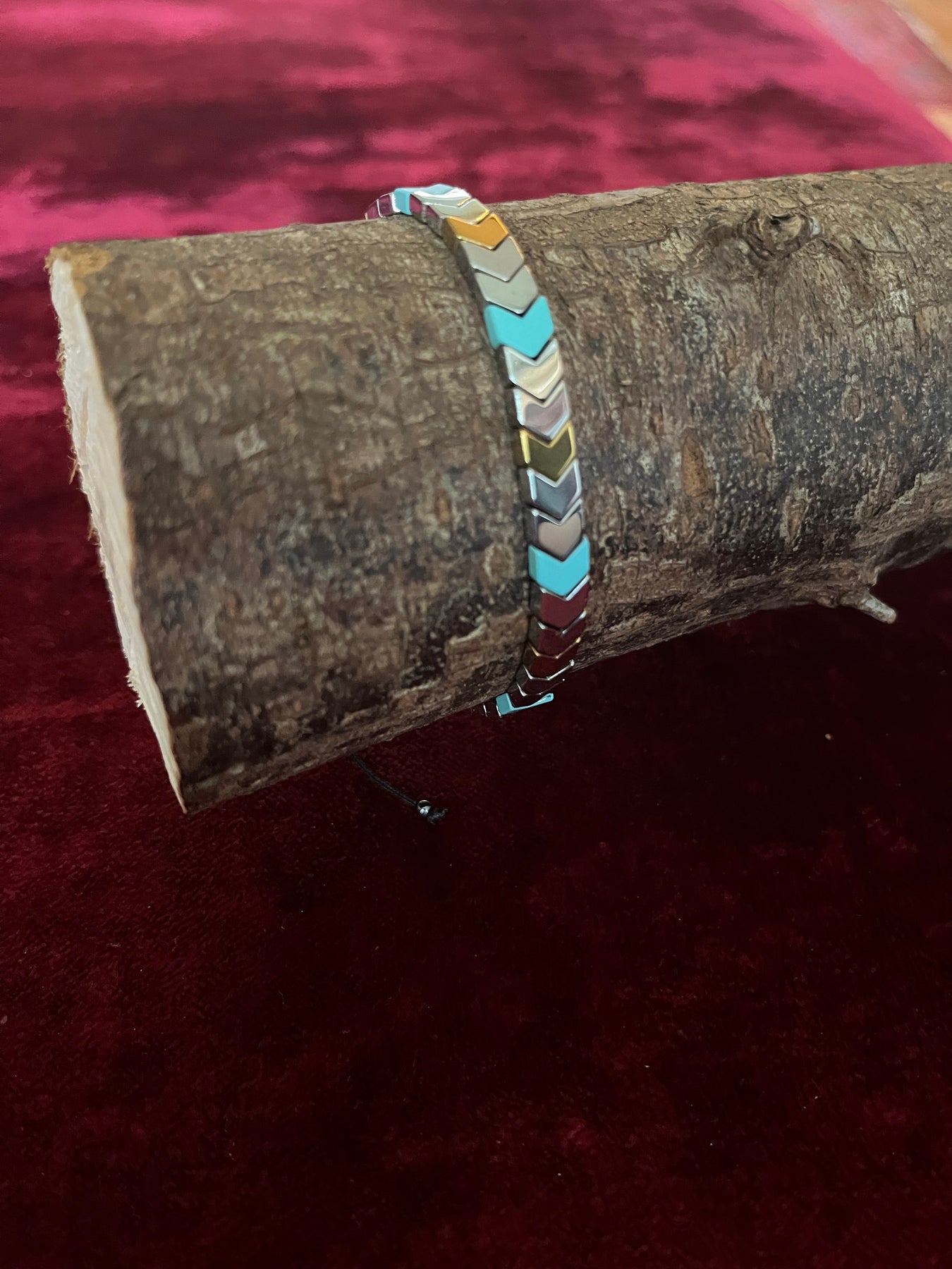 Introducing our striking Unisex Multicolored Arrow Hematite Bracelet, a beautiful blend of style and holistic healing. Expertly crafted, each bead features the unique, multicolored hues of hematite stones, celebrated for their grounding effects and ability to balance mind, body, and spirit. The vibrant colors of hematite create an eye-catching design, providing not just visual appeal but also a reminder of the diverse energies within us. Experience the balancing properties of hematite as you wear this bracelet, which supports emotional stability, strength, and vitality. Let our Hematite Multicolored Arrow Bracelet become your everyday accessory, bringing positive energy and enhancing your well-being with its dazzling appearance. This bracelet is a perfect gift for occasions such as Valentine’s Day, anniversaries, birthdays, and Father’s Day, making it an excellent choice for your significant other.